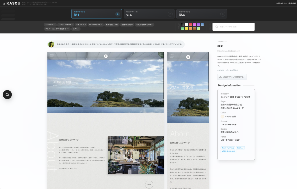 「KASOU」様に、弊社で制作させていただいた「DRiP」様のホームページを掲載頂きました。