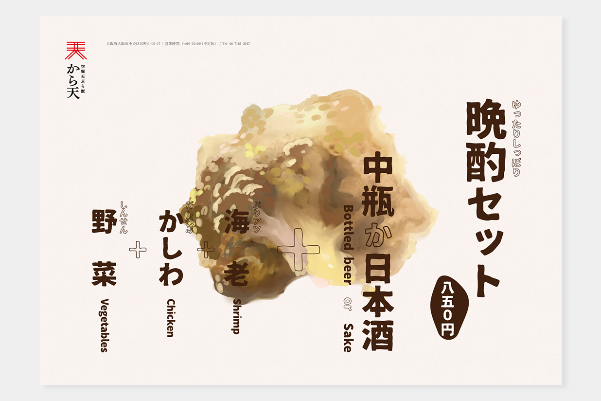 Design: Kenji Mihara (amanojack design /Panda Limited Liability Company), Illustration: Yuki Sugama (amanojack design /Panda Limited Liability Company), Client: から天